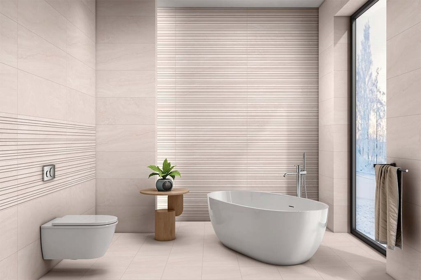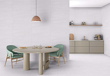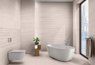 В составе коллекции представлено два базовых цвета в серо-бежевой гамме и два декора в виде фактурных горизонтальных линий.