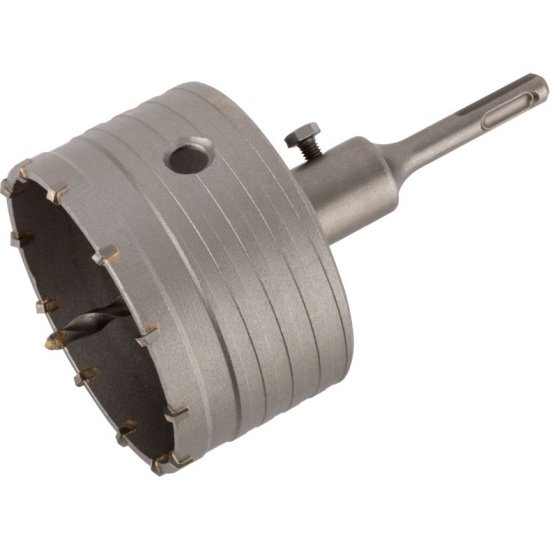 Кольцевая коронка диаметром изготовлена из хром-молибденовой стали и дополнена твердосплавными резцами. Благодаря этому она быстро и качественно справляется с ударным сверлением по бетону, кирпичу, строительному камню. Изделие позволит просверлить ровные отверстия без сколов и трещин. Производитель рекомендует смазывать хвостовик перед установкой в патрон.