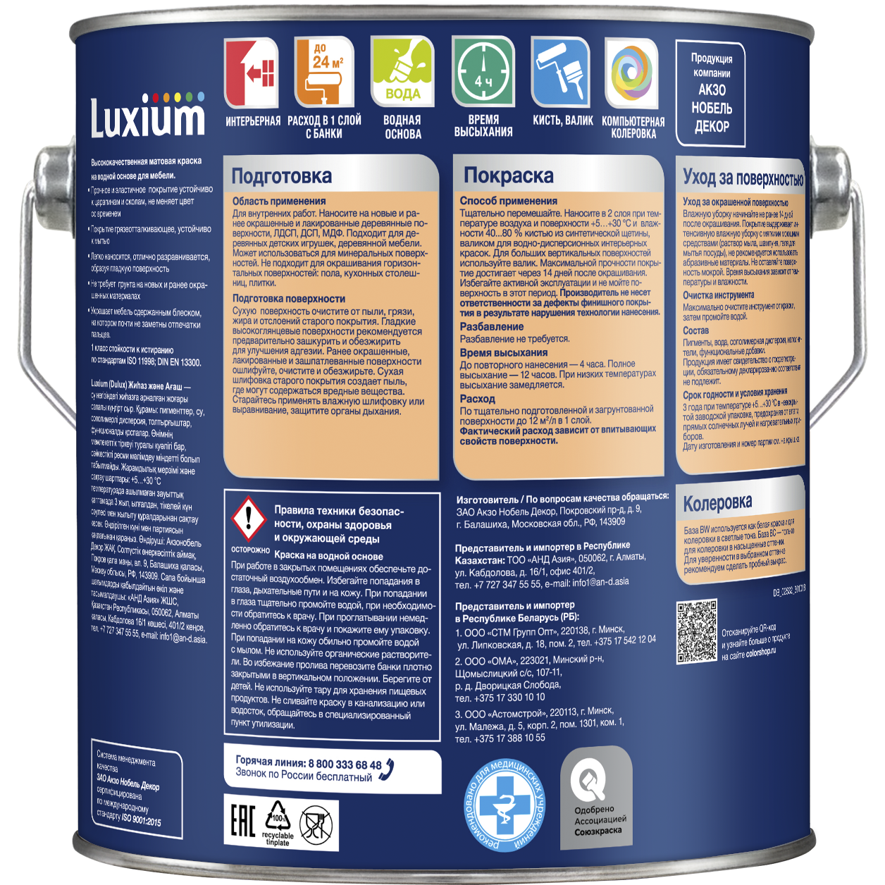 Краска Luxium (Dulux) Мебель и Дерево матовая база BW 2л