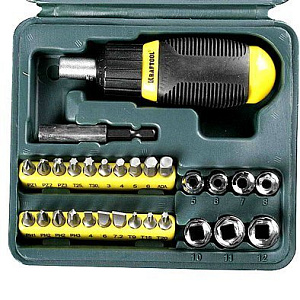 Отвертка KRAFTOOL реверсивная с набором (29 предметов)