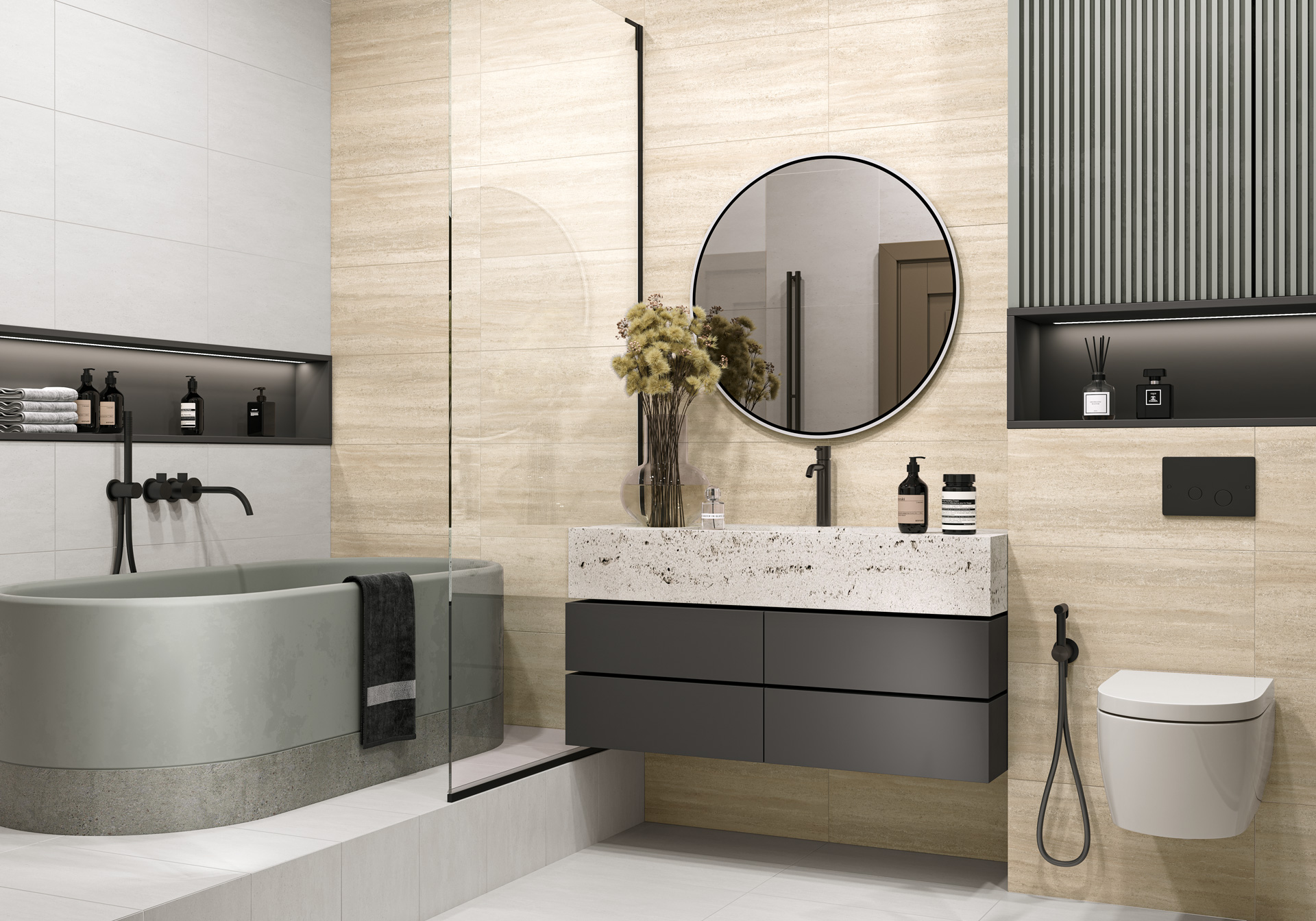 Коллекция керамогранита Altesse, представленная в формате 300x600 мм, воплощает изысканное сочетание природной эстетики и современной функциональности. Рельефная матовая поверхность дарит тактильное ощущение натурального камня и мягко рассеивает свет, создавая уютную и спокойную атмосферу. Дополняет этот эффект горизонтальная песочная текстура, которая имитирует слоистые осадочные породы или мягкие дюны и привносит в интерьер ненавязчивое движение и тепло природных ландшафтов. Такое дизайнерское решение делает Altesse идеальным выбором для создания гармоничных и расслабляющих пространств.