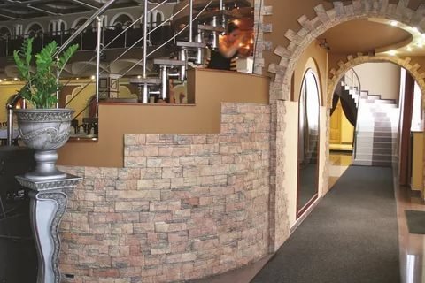 Эта коллекция вполне заслуженно стала одной из самых популярных. Ее важное отличие в том, что камень обладает очень гладкой и тонкой фактурой. В результате кладка выглядит очень современно, а выполняется очень быстро и легко. Этот отделочный камень подходит для облицовки стен и цоколя, поскольку надежно защищает стены от негативных климатических условий. Практичность делает этот камень идеальным материалом для отделки интерьера кухни. Кроме того, коллекцию «Безенгийская стена» часто используют для фрагментарной облицовки фасада, при этом очень красиво смотрится сочетание сразу нескольких цветов одной фактуры.